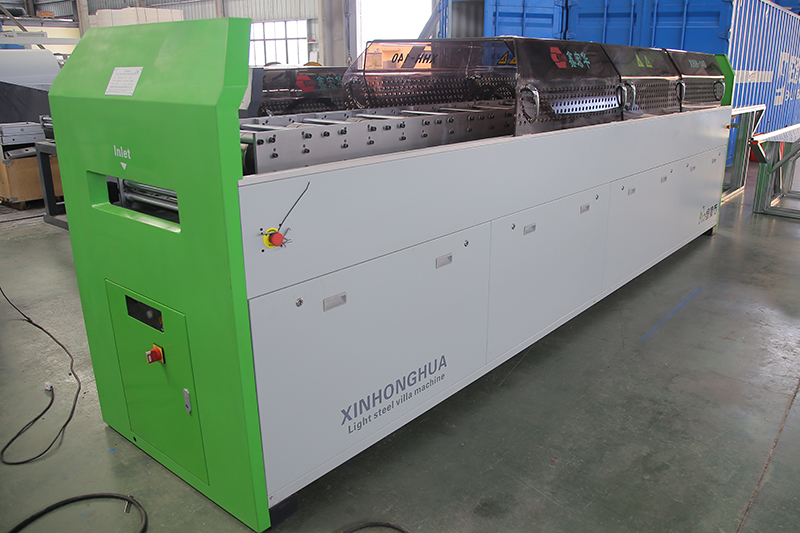La solidité de la matière première est fortement réduite lors de la réalisation d'encoches continues sur la bande et la lèvre, ainsi la matière dans la machine de pré-poinçonnage peut être facilement extrudée et causer un blocage de la machine pendant le processus de profilage. La machine XHH LGS est dotée d'un système de post-poinçonnage, ce qui nous permet de faire plus d'encoches continues sur la bande, même dans une épaisseur fine de 0,55mm, sans extruder le matériau.
