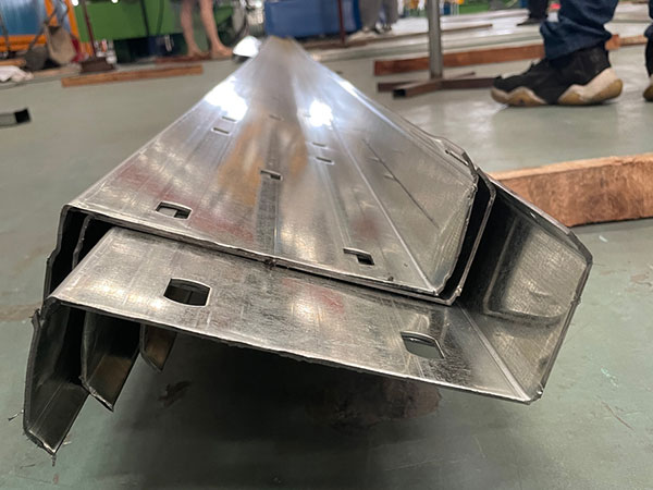 La machine de pannes Z est un type d’équipement de profilage de rouleaux en continu, qui est conçu pour produire des pannes Z de différentes tailles en fonction d’exigences spécifiques. La largeur du web et la hauteur de la bride peuvent être réglées manuellement ou automatiquement. Avec une automatisation complète, la machine permet de changer de taille entre 120 mm et 300 mm en une minute seulement via le contrôle PLC.