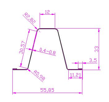La ligne de profilage pour profilé chapeau YX33-56 est destinée à produire des profilés en forme de chapeau d'une largeur de 56 mm et d'une hauteur de bride de 33 mm, avec une vitesse de production maximale de 30 m/min. Elle a été conçue pour réaliser avec le maximum de rapidité et de précision les opérations de profilage tout en minimisant le réglage des outillages.